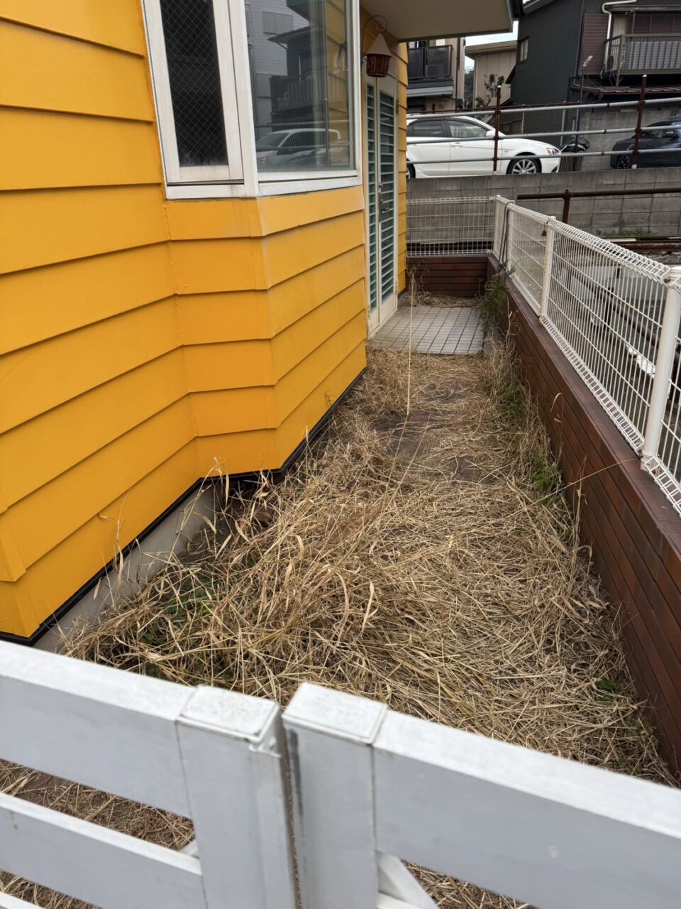 もともとはレンガが敷いてありましたが、脇からは草が生え、せっかくの建屋の素敵な景観が勿体ないなと感じる状態でありました。