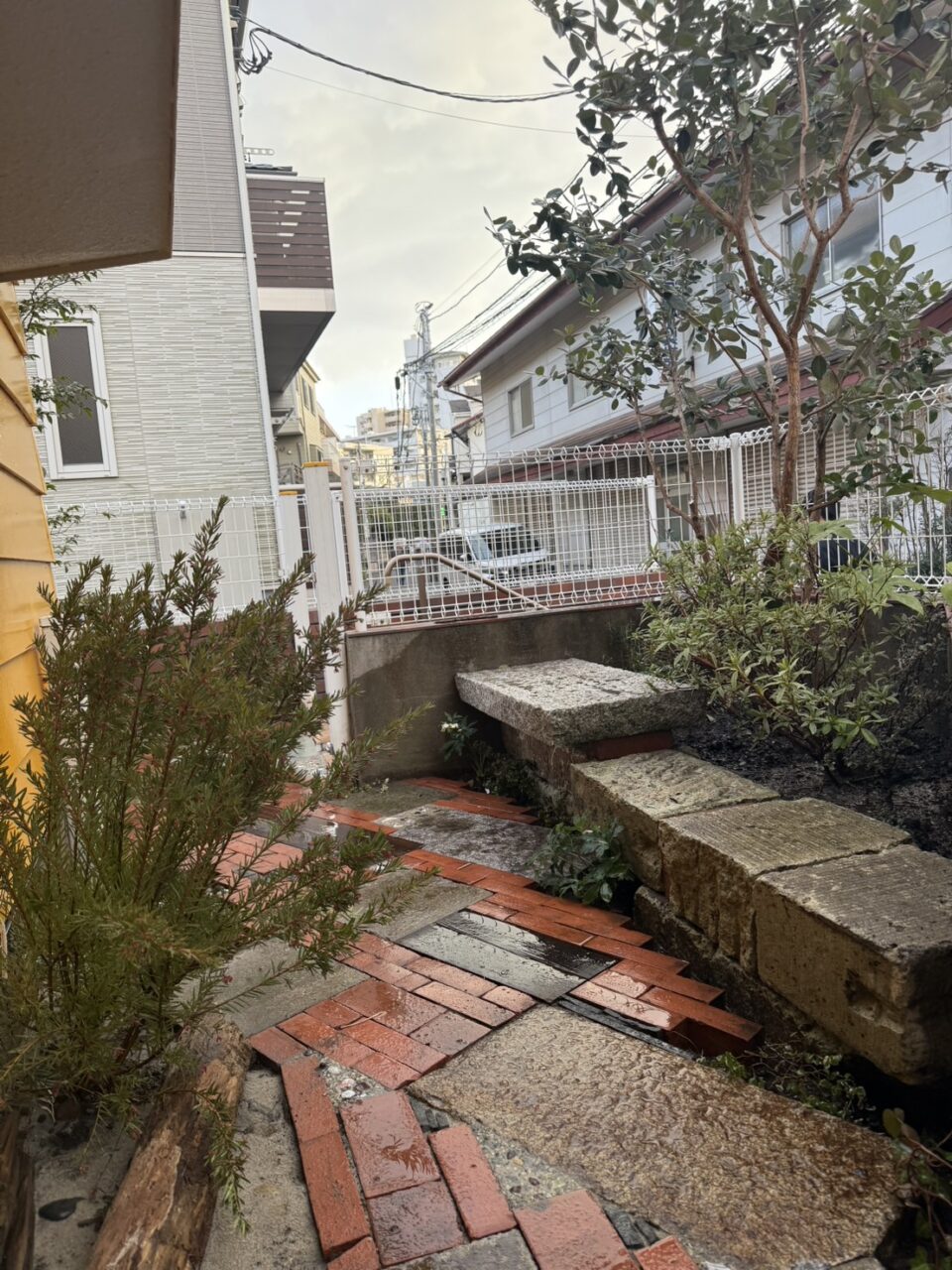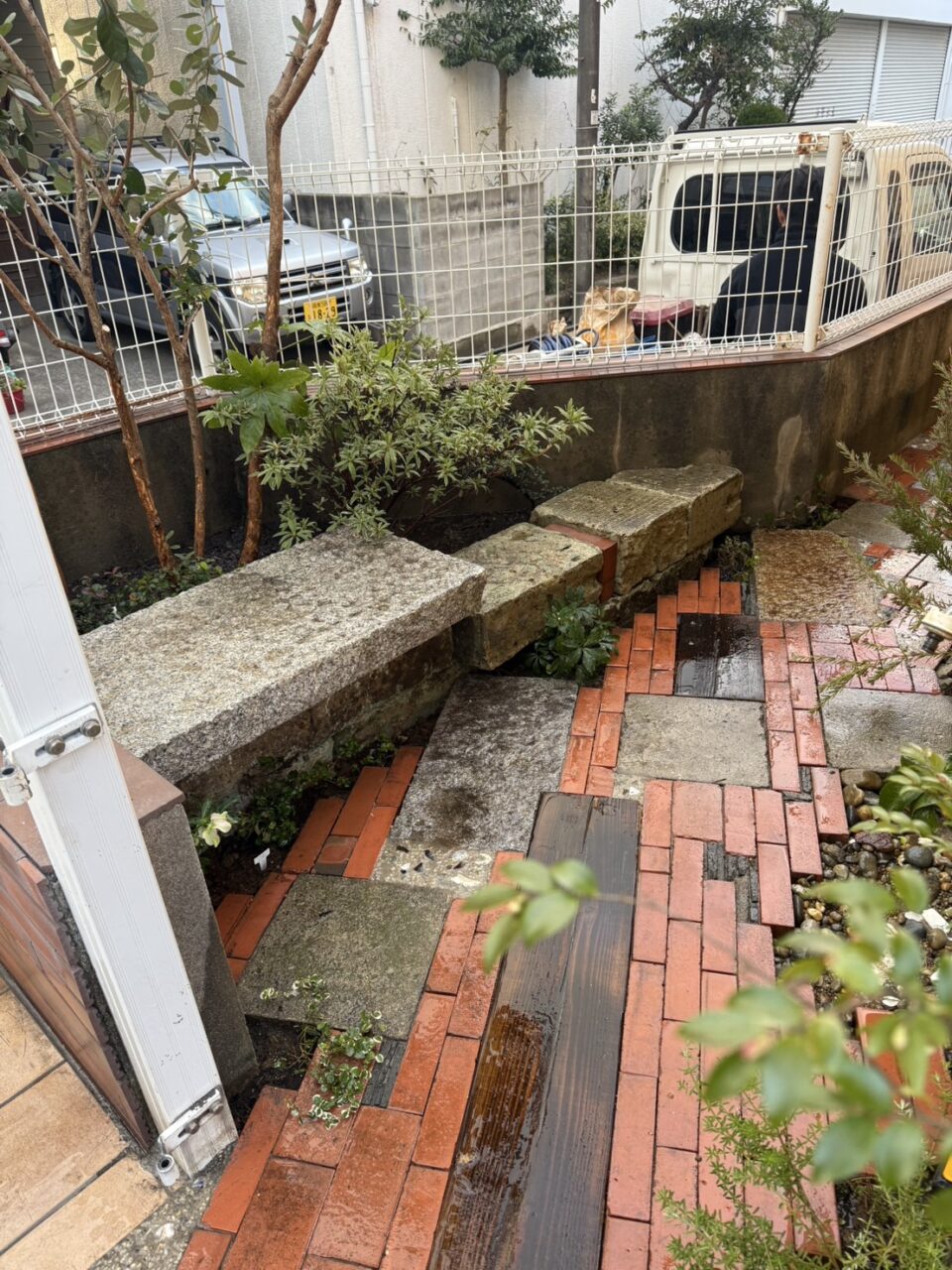 まず、草が生えにくくなるようにレンガを敷き直すことにしました。