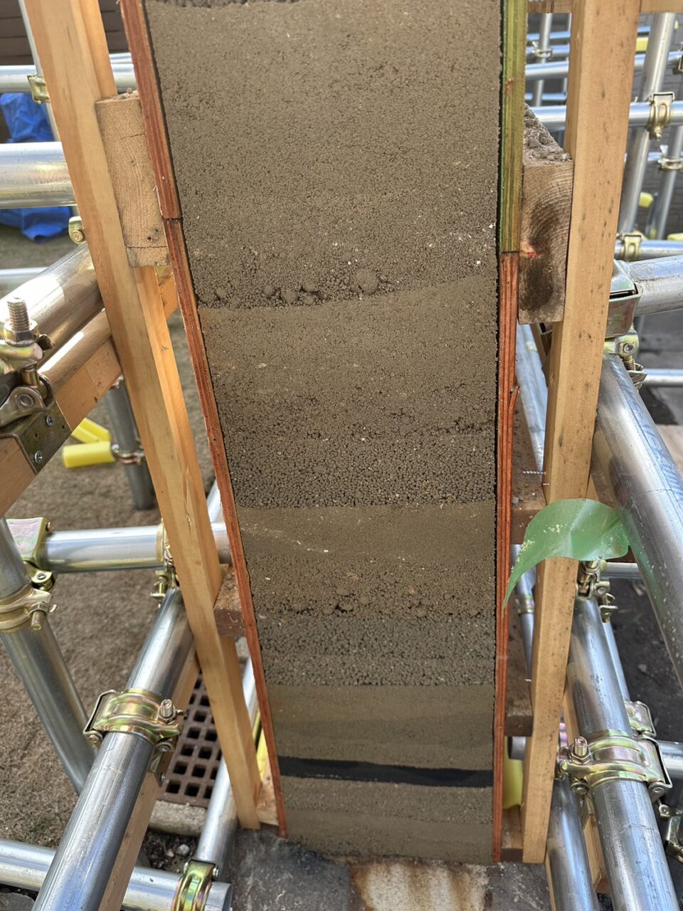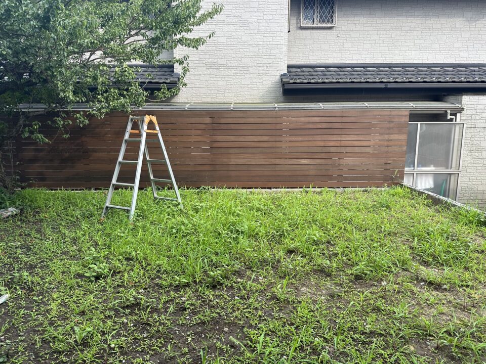 まずはリビングから道路が見えないように版築土塀にて目線を遮る遮蔽物を造らせて頂きました。