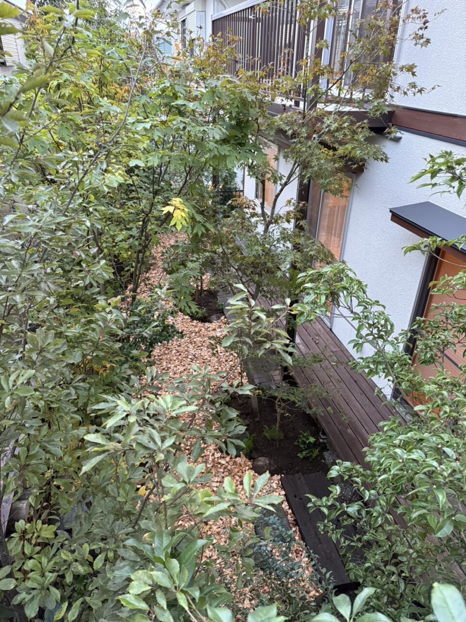 2階の部屋からも木々を楽しめるように高い木を植えました。