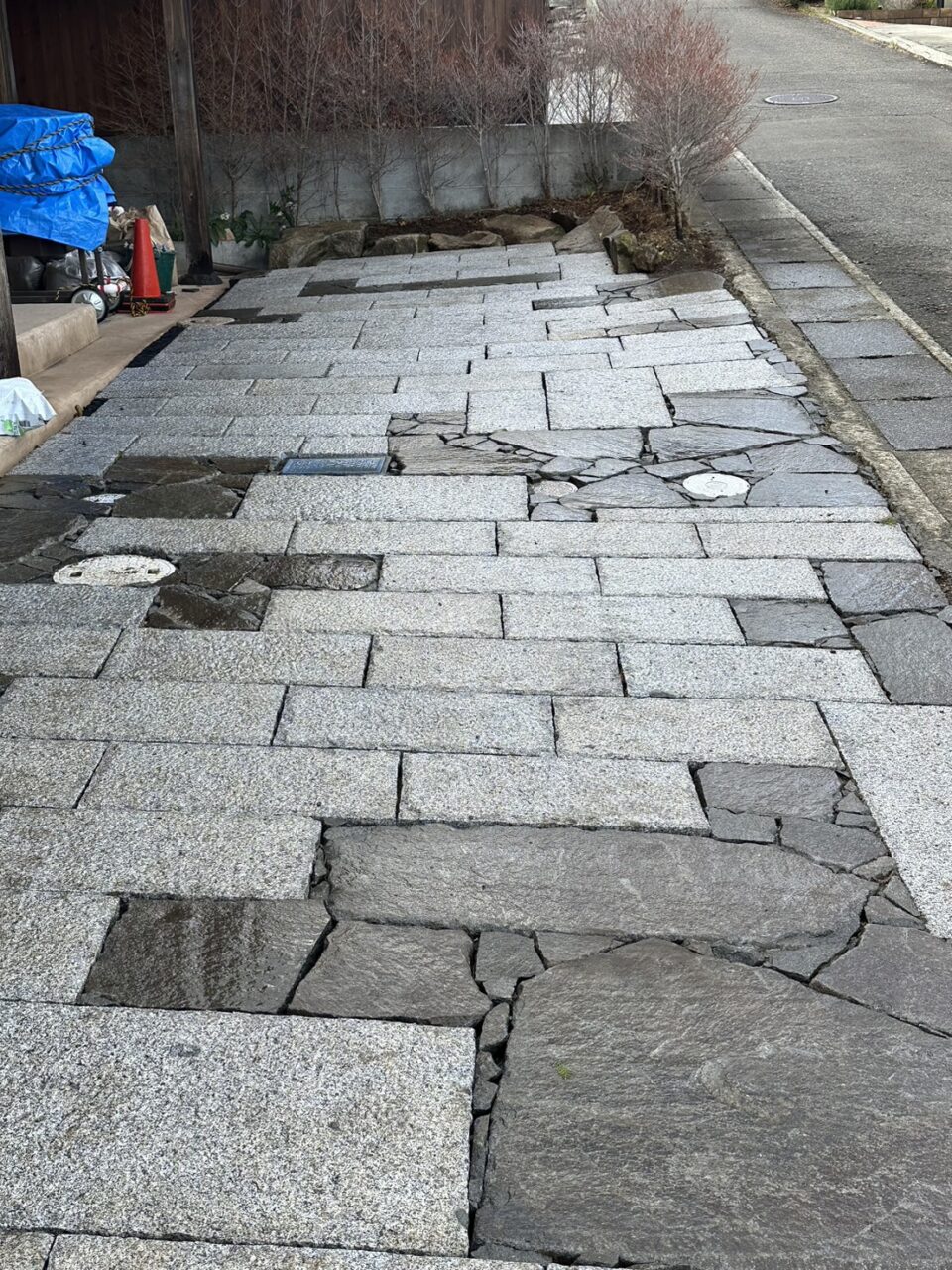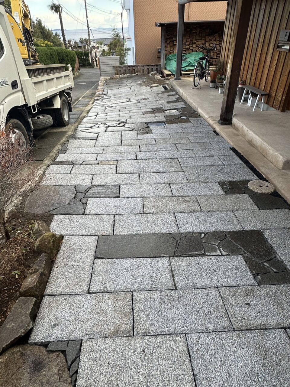 駐車場には御影平板と佐久鉄平石を敷きました。
