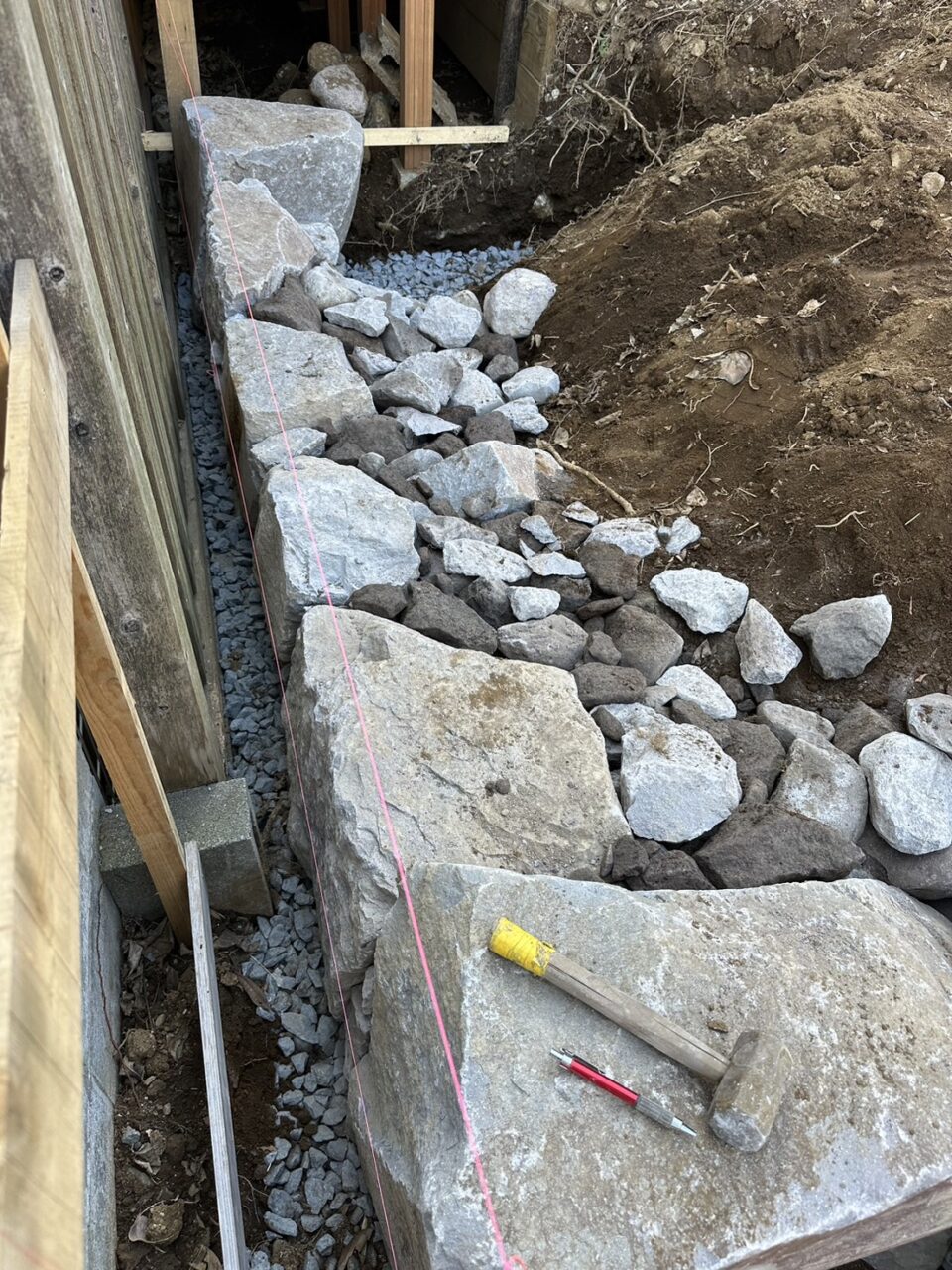 高低差があったため、低い場所は土留めの石積みを産地の小松石で施工しました。
